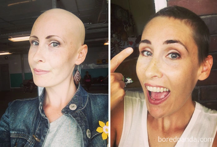 28. «Около года назад я закончила химиотерапию, и мои волосы снова начали расти. Невероятно, сколько всего может измениться за год!»