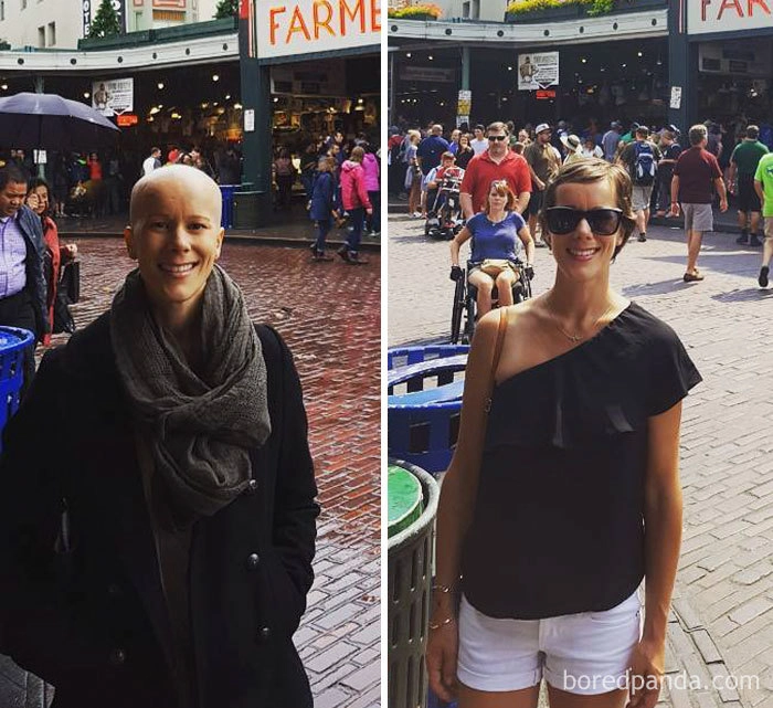 Немногие вещи в нашей жизни победить труднее, чем рак. Безжалостный диагноз настигает и детей, и взрослых, одним прогнозируют несколько месяцев жизни, другим — всего пару дней. Однако люди противостоят этой страшной болезни всеми силами. Все герои на фотографиях ниже проявили невероятную силу духа и побороли одну из главных причин смертности в мире. Собрали для вас пронзительные снимки людей до и после победы над раком.