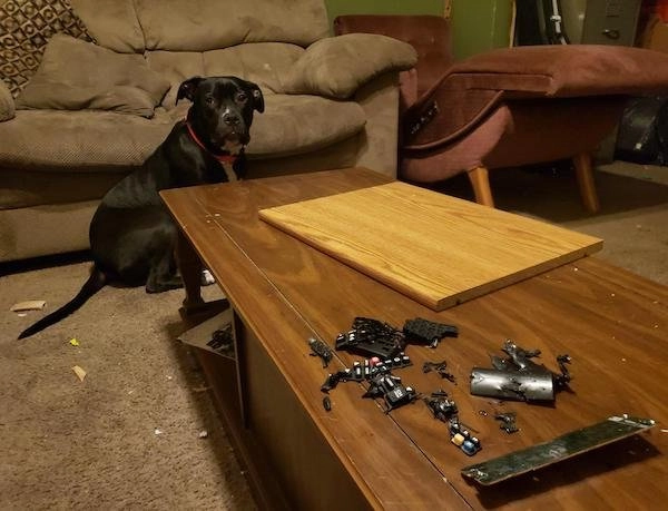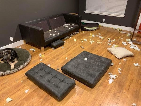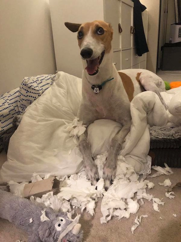 Собаки, которые что-то испортили в процессе игры, порой искренне не понимают недовольства хозяев. Если бы они могли говорить, то, возможно, возразили бы: «А это разве не для меня лежало?».