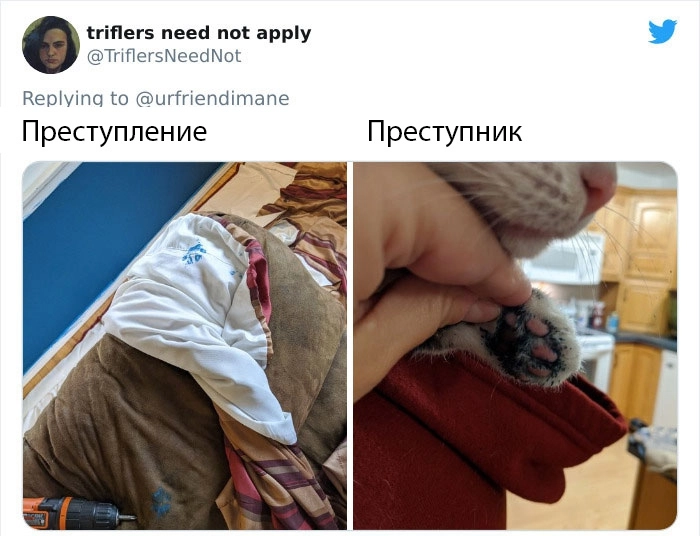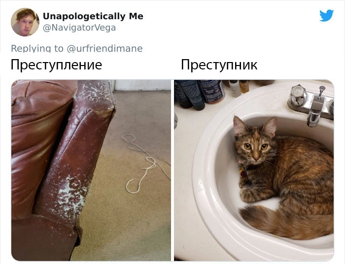 Однако все тайное в итоге становится явным. Так, владельцы котеек запустили забавный челлендж в Twitter под названием «Преступник и преступление», в котором показали своих питомцев и их проделки. Предлагаем вам оценить фото самых очаровательных нарушителей домашнего порядка, пролистав ниже.