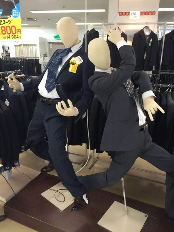 Чего только не встретишь в магазинах — начиная от странных вывесок и забавных ценников, заканчивая посетителями в нелепой одежде. На этот раз наше внимание привлекли необычные манекены. В попытках привлечь внимание к своим товарам хозяева часто приставляют манекенам кошачьи, собачьи и даже крокодильи головы. Да и создатели искусственных людей тоже частенько вкладывают в свои творения максимум креатива и чувства юмора. Собрали для вас фотографии самых оригинальных манекенов, которые могут как напугать вас, так и заставить смеяться в голос.
