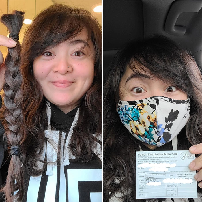 «Попрощалась с 2020 годом, отдав волосы на благотворительность и сделав прививку от коронавируса»