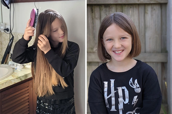 «Моя 8-летняя дочь почти три года отращивала волосы, чтобы пожертвовать их людям, которые борются с раком»