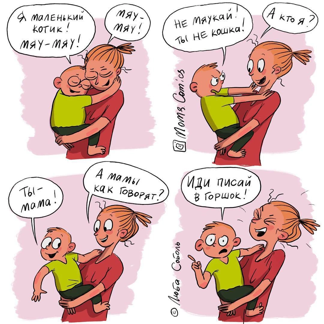 Сейчас сыну художницы уже 3 года, и она признаётся, что стало легче, ведь теперь ребёнок может сказать, чего хочет, умеет играть сам по себе и даже пытается шутить. За это время на страницу мамы-иллюстратора в Instagram подписалось уже больше 50 тысяч человек и, судя по восторженным комментариям, практически каждый родитель, глядя на смешные комиксы Любы Соболь, узнаёт в них себя. И это немудрено, ведь на творчество девушку вдохновляют реальные ситуации, которые сплошь и рядом происходят в семьях с детьми.