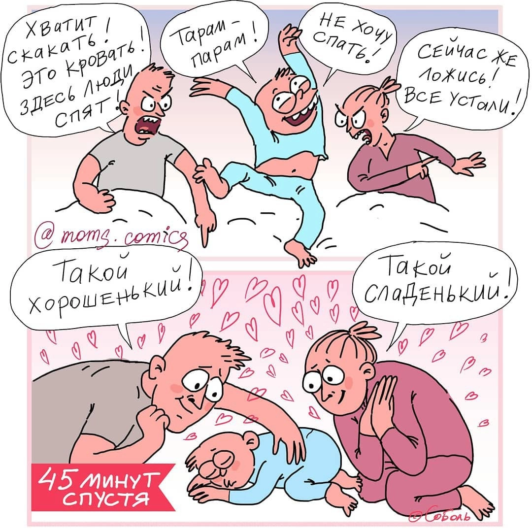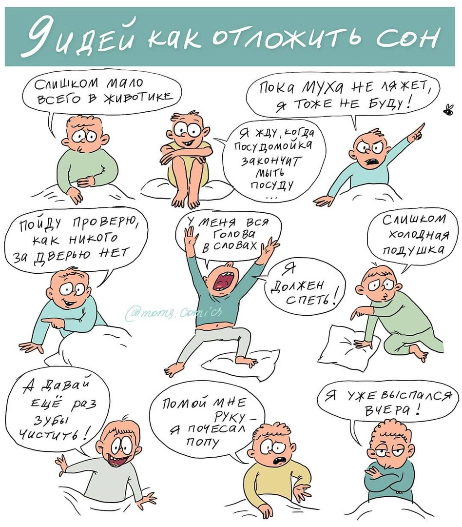 4. «Комикс-шпаргалка про то, как успешно уклониться ото сна (если ребёнок, конечно, не хотите ни какать ни пИсать — это святое!)»