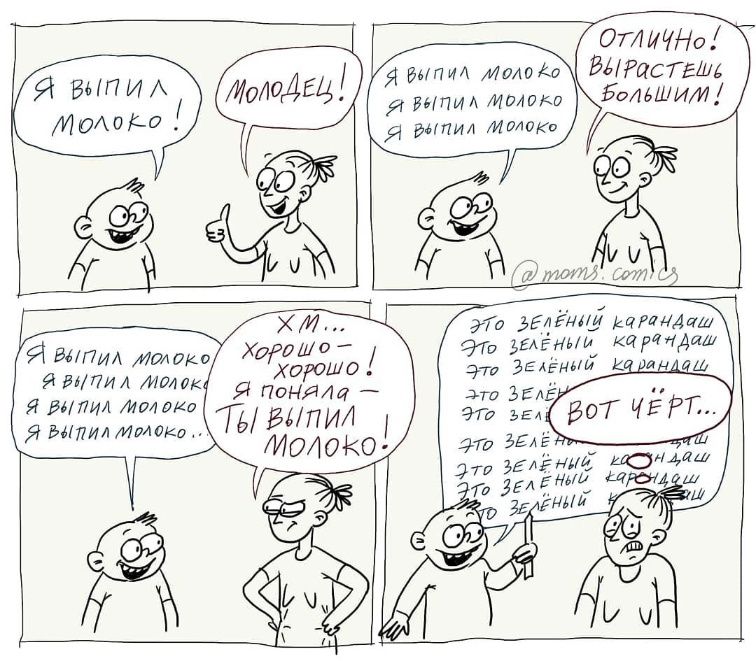 10. «История про то, как нормальный человек превращается в попугая, когда его ребёнок учится говорить»