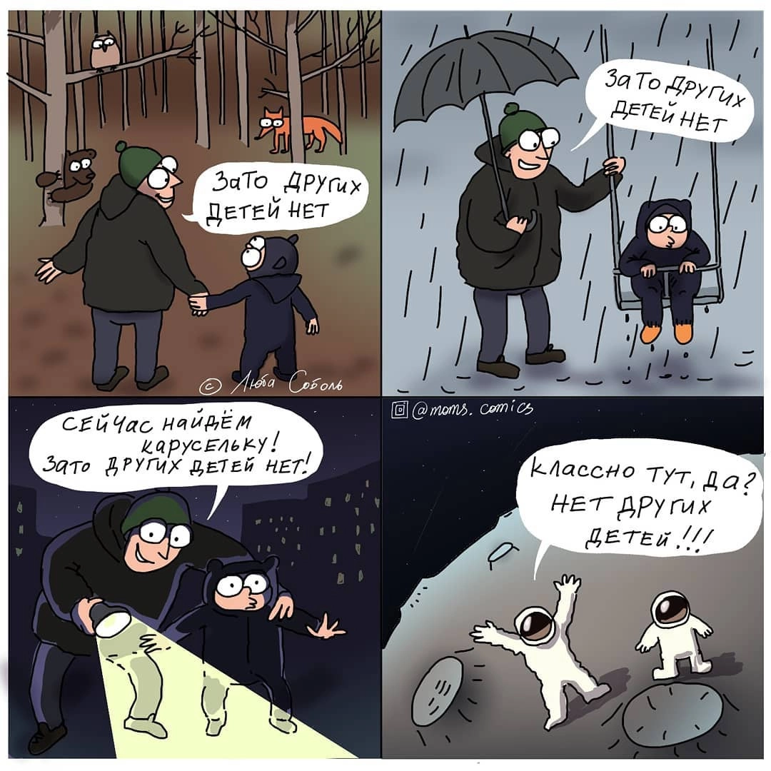 13. «Комикс про родителя-интроверта, который не любит гулять в местах, где есть другие дети»