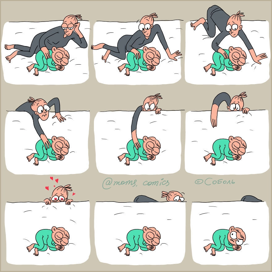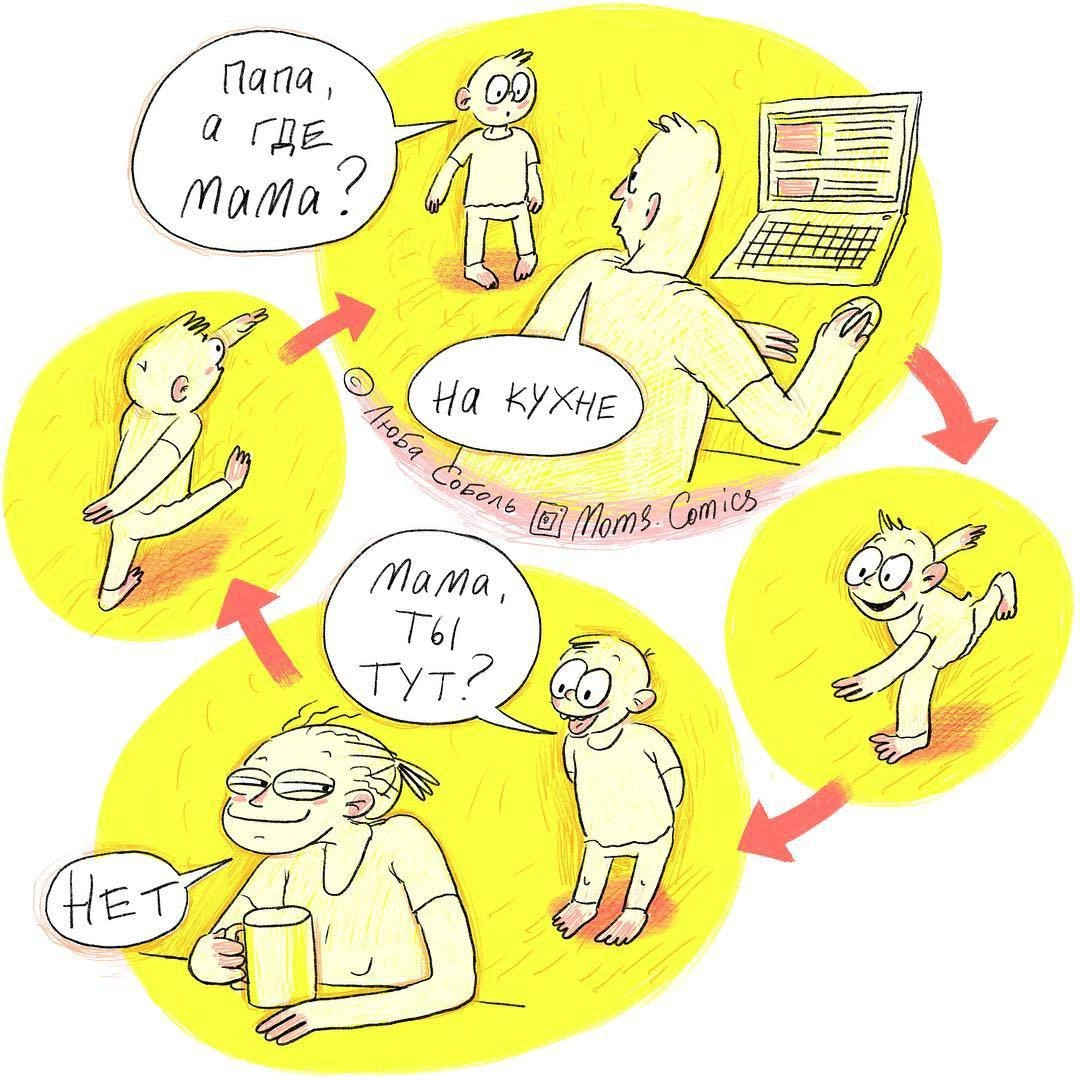 Российская художница Люба Соболь начала рисовать комиксы, когда её первенцу, сыну Лёве, было 9 месяцев. По словам девушки, она не представляла, как сильно ожидания от родительского опыта будут отличаться от реальности, и чтобы не сойти с ума в декрете, молодая мать начала зарисовывать ежедневные будни с ребёнком.