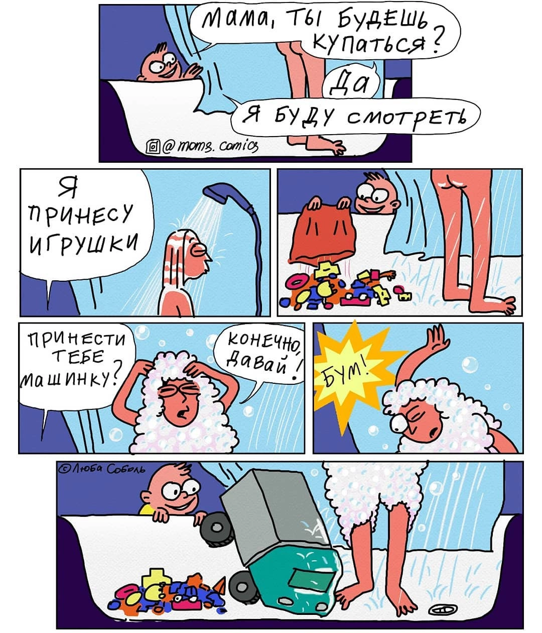 32. «Просто люблю купаться с игрушками и у меня заботливый ребёнок»