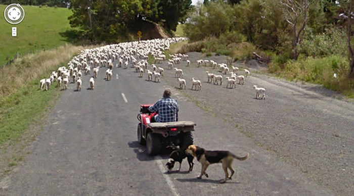 Камеры Google Street view следят за миром с 2007 года, что делает возможным побывать на другом конце света, не вставая с дивана. Компания закрепила видеокамеры ко всем видам транспорта и даже установила их на людей, чтобы в кадр попадали самые неожиданные сцены с необычных ракурсов. На фотографиях вы не увидите никакого позирования или отфотошопленных снимков, просто люди и животные занимаются своими делами в естественной среде обитания. И порой под всевидящее око Google попадают очень смешные, нелепые и странные сцены, глядя на которые хочется сказать «Ух ты!» или «Что тут, чёрт возьми происходит?!». Собрали для вас забавные фото зверей, которые случайно попали в объектив уличных камер.