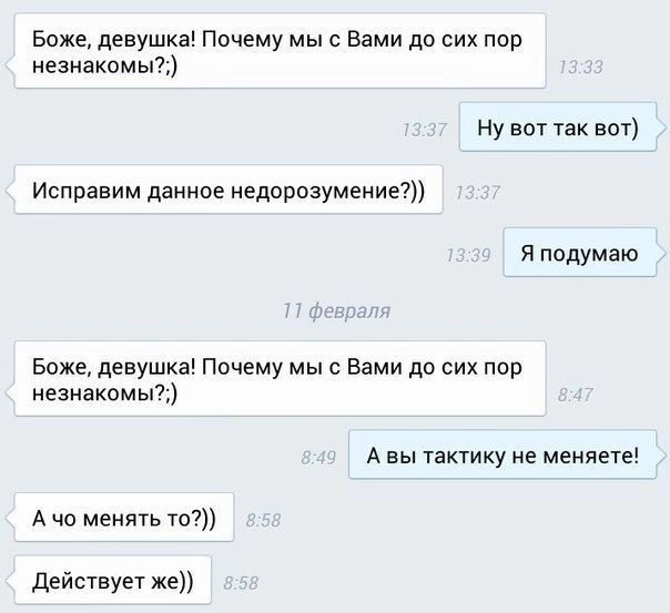 Сообщения с неудачными «подкатами» вызвали улыбки не только у девушек, но и у многих парней. «Ридус» собрал несколько переписок, чтобы каждый из нас смог по-доброму посмеяться.