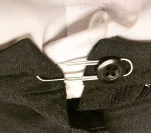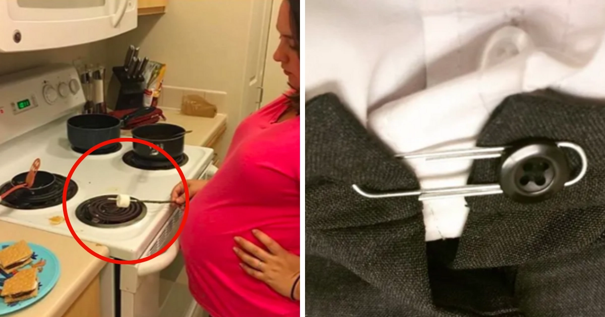 5. Беременная использует скрепку, чтобы удержать брюки на животе