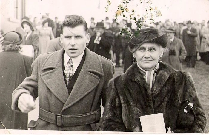 «1940 год. Мой дедушка (на фото ему 17 лет) на скачках со своей матерью»