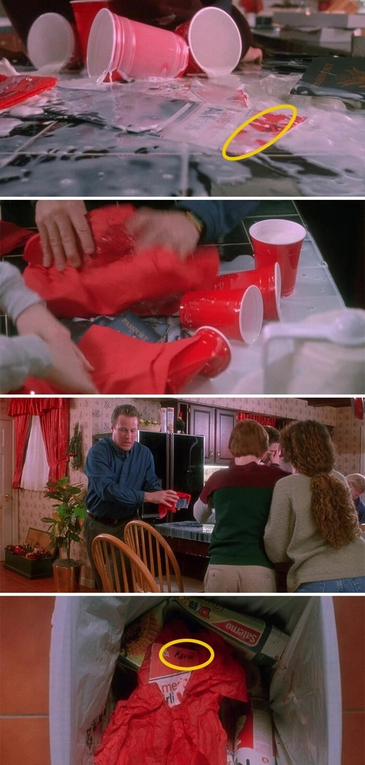 Во второй части картины Марв уверен, что схватил нужного мальчика, потому что у того такая же шапка, как у Кевина в первом фильме