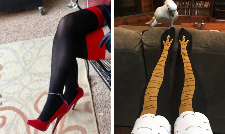 Какие чулки выберете? Соблазнительные или… обычные черные с красной полоской?