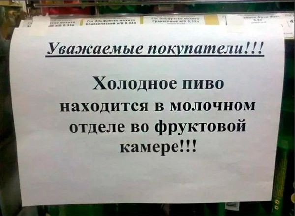 Русский менталитет, смекалка и чувство юмора проявляются во всех сферах жизни. Объявления из нашего материала — очередное тому доказательство. Их авторы решили избежать формальностей и донести информацию необычным и забавным способом. Как ни странно, у них это прекрасно получилось!