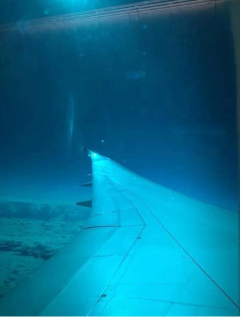 Тонированные стекла самолета создают впечатление, будто он летит под водой