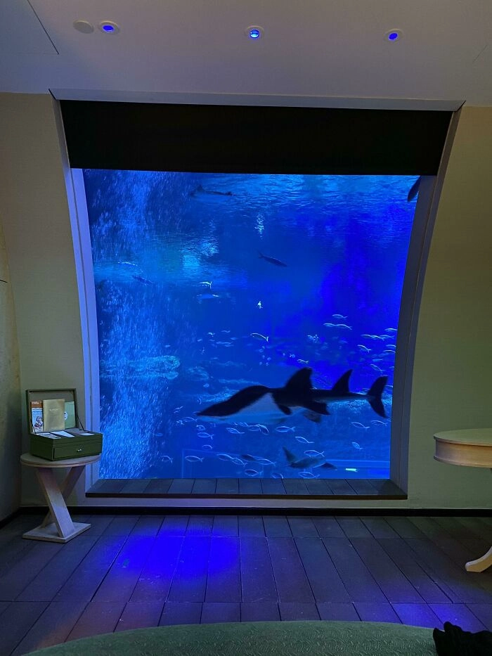 «В нашем гостиничном номере находится гигантский аквариум, в котором плавают акулы и скаты-манты»