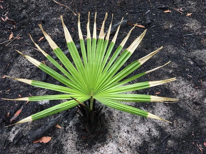 Зеленые листья и почки на фоне сгоревшего леса выглядят особенно душераздирающе.