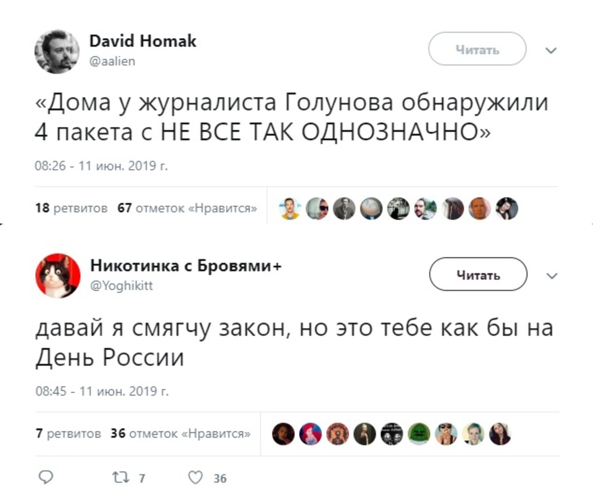 Скандальное дело журналиста «Медузы» Ивана Голунова, обвинённого в сбыте наркотиков, спровоцировало в обществе невероятный резонанс: пикеты и выступления в защиту корреспондента заполонили интернет. Дело было явно сфабриковано — уверена большая часть здравомыслящего интернет-сообщества. За Ивана, арестованного 6 июня, вступилось всё активное гражданское общество — коллеги-журналисты, правозащитники, знаменитости, артисты, певцы, музыканты и общественные деятели.