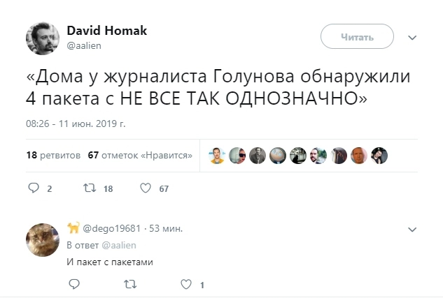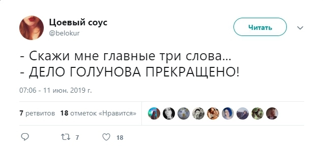 Сегодня, 11 июня, глава МВД Владимир Колокольцев объявил, что уголовное дело против Голунова прекращено «в связи с недоказанностью его участия в совершении преступления». И пока в обществе празднуют победу справедливости и обсуждают, что будет дальше и чьи головы полетят в связи с чудовищной фальсификацией, соцсети встречают эту радостную новость, как умеют — шутят и создают саркастические мемы. Собрали для вас 10 лучших шуток об освобождении журналиста.