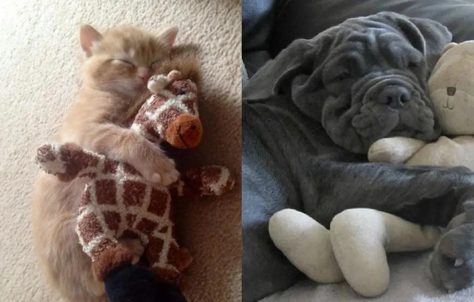 10+ очаровательных животных, уснувших в обнимку с любимыми игрушками