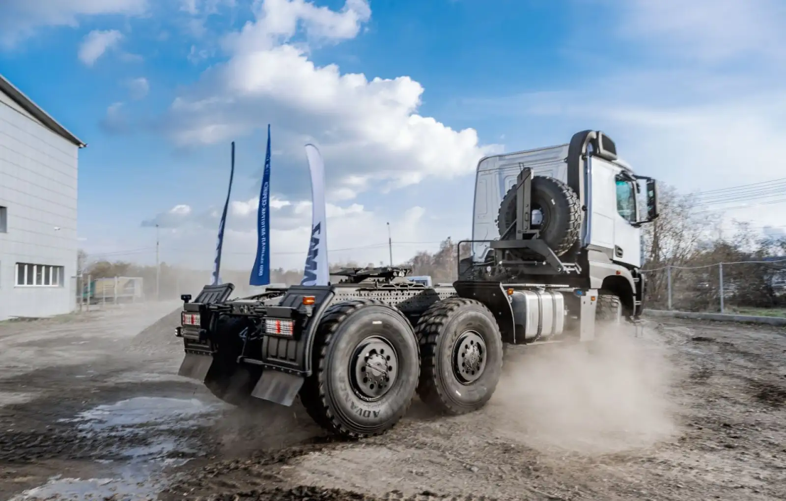 В России стартовали продажи новейшего тягача КАМАЗ-65954 (6×6), который встал на конвейер в 2025 году. Машина предназначена для работы на бездорожье, способна перевозить сверхтяжелые грузы и буксировать автопоезда полной массой до 100 тонн. Об этом сообщили «Вести КАМАЗа».