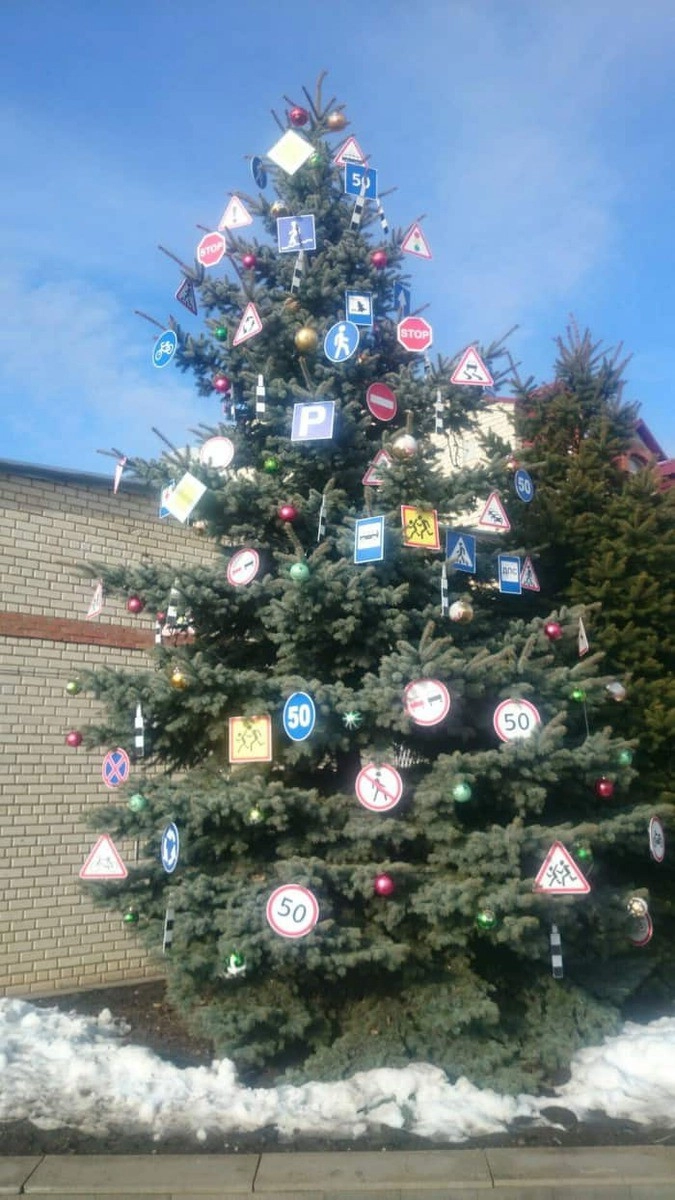 Эту ёлку умельцы сделали из старой шины, пластиковой трубы и ведра