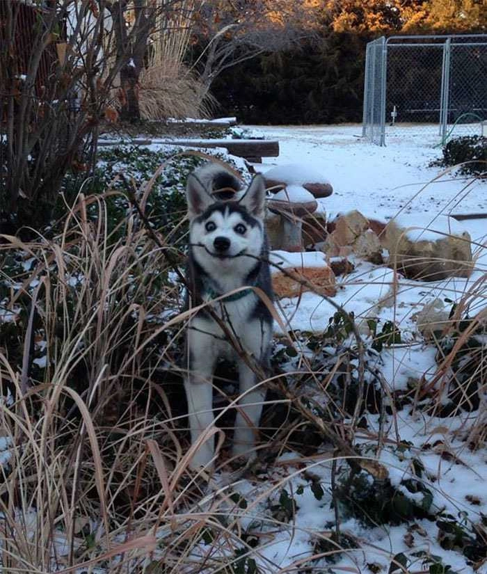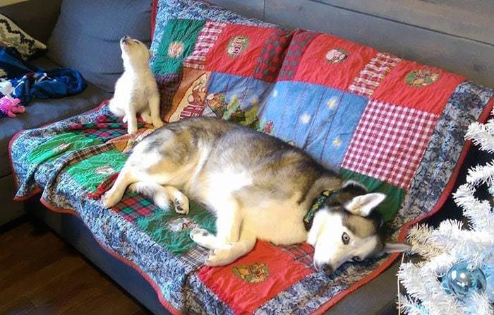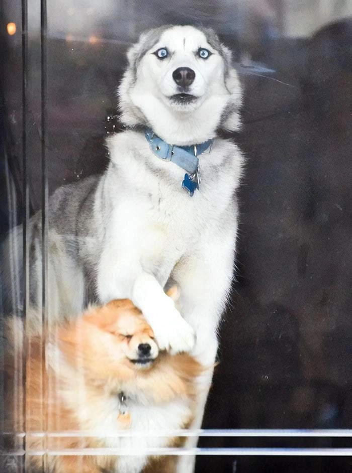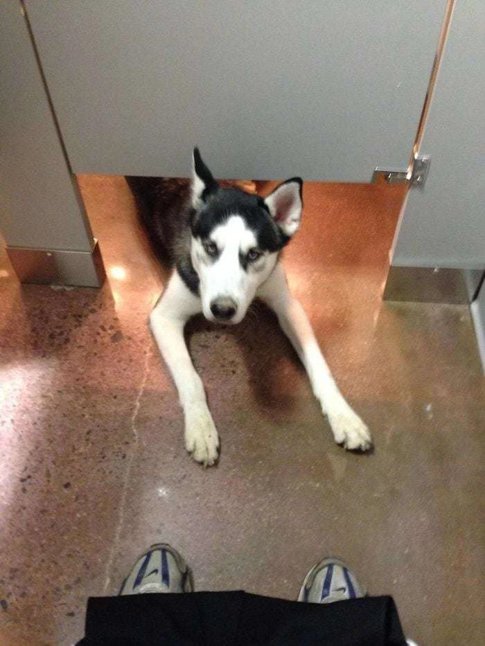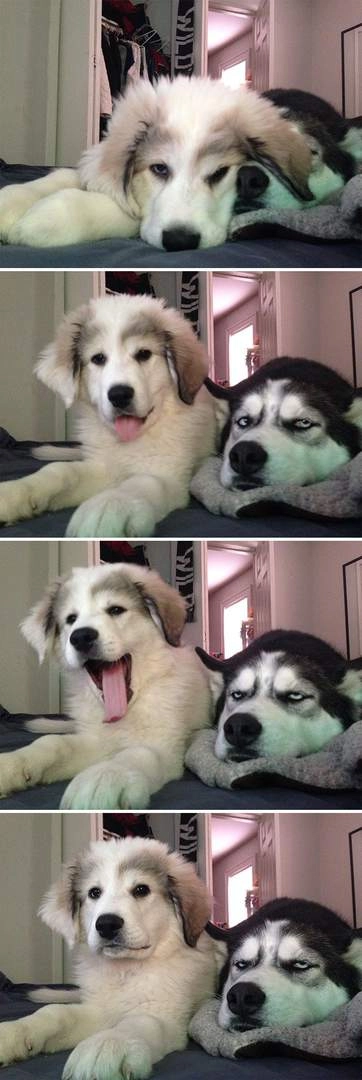 10. «Так выглядит хаски моей девушки, когда к ним приходят гости»