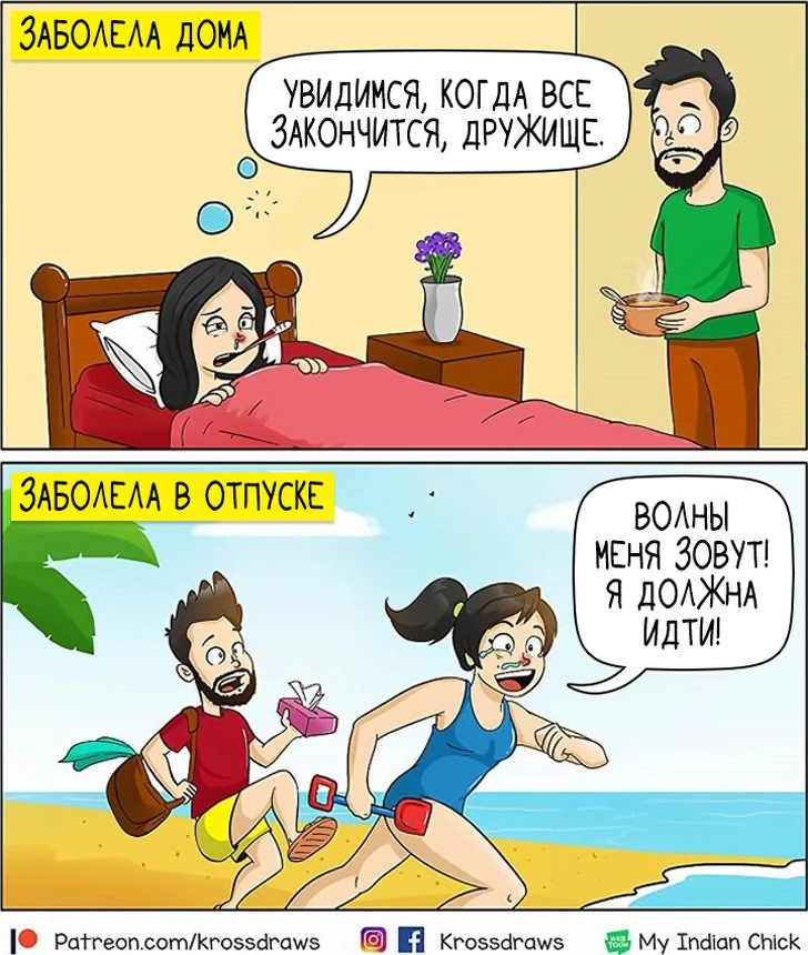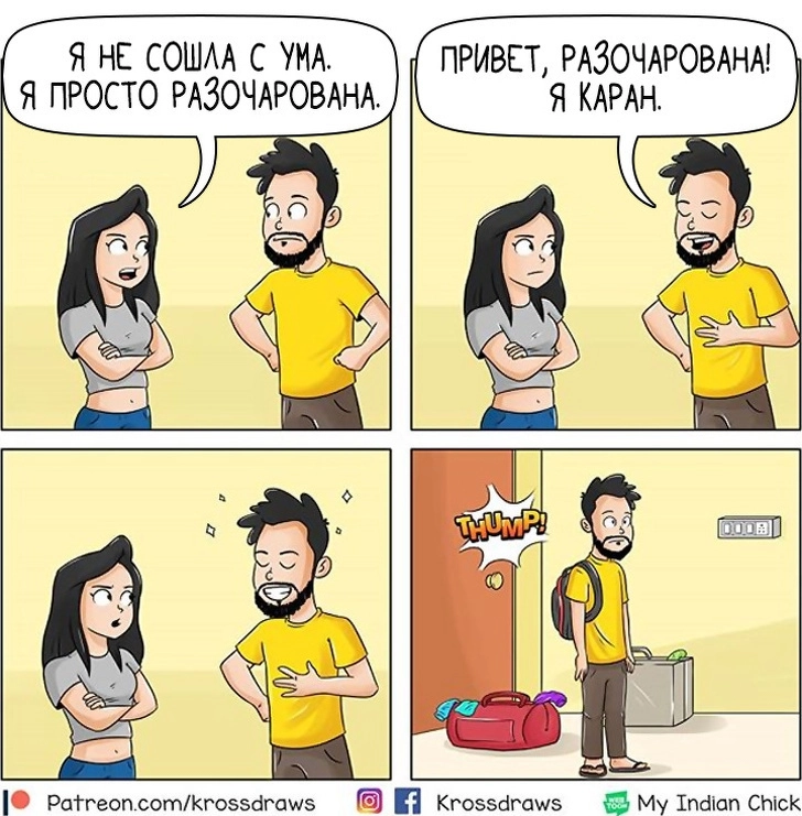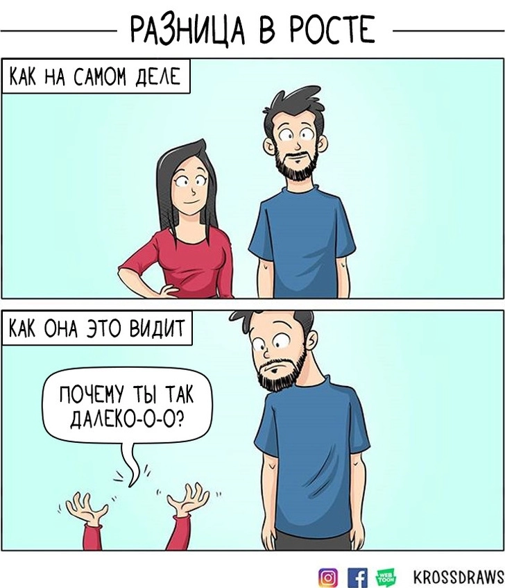 Известно, что представители разных полов сильно отличаются друг от друга. Недаром говорят, что мужчины с Марса, а женщины с Венеры. Индийский художник Каран Гупта (Karan Gupta) больше всего на свете любит рисовать комиксы и свою девушку. И взгляд на отношения глазами парня отличается от того, как видят совместную жизнь девушки. И пусть в этих картинках не так уж много романтики, зато есть юмор, ирония и, конечно же, любовь. Ведь по словам художника, каждый день — это приключение, когда твоя половинка немного странная.