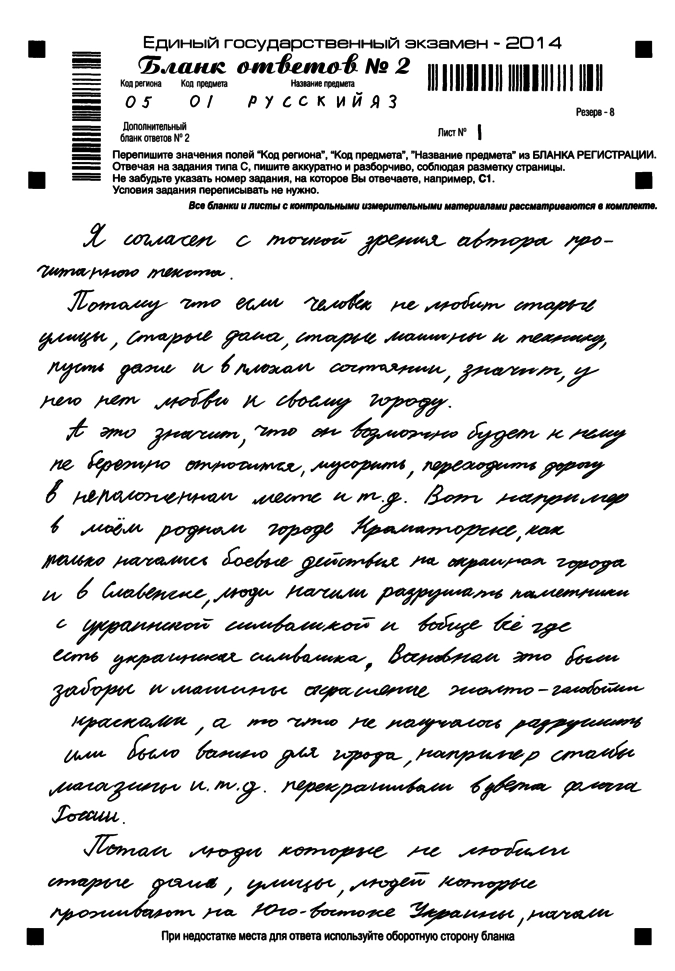 Ниже представляем полный скан изложения Дмитрия Солода на ЕГЭ по русскому языку, сданному в 2014 году в Подмосковье.