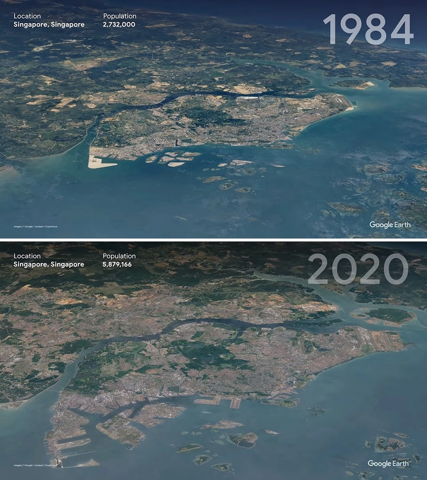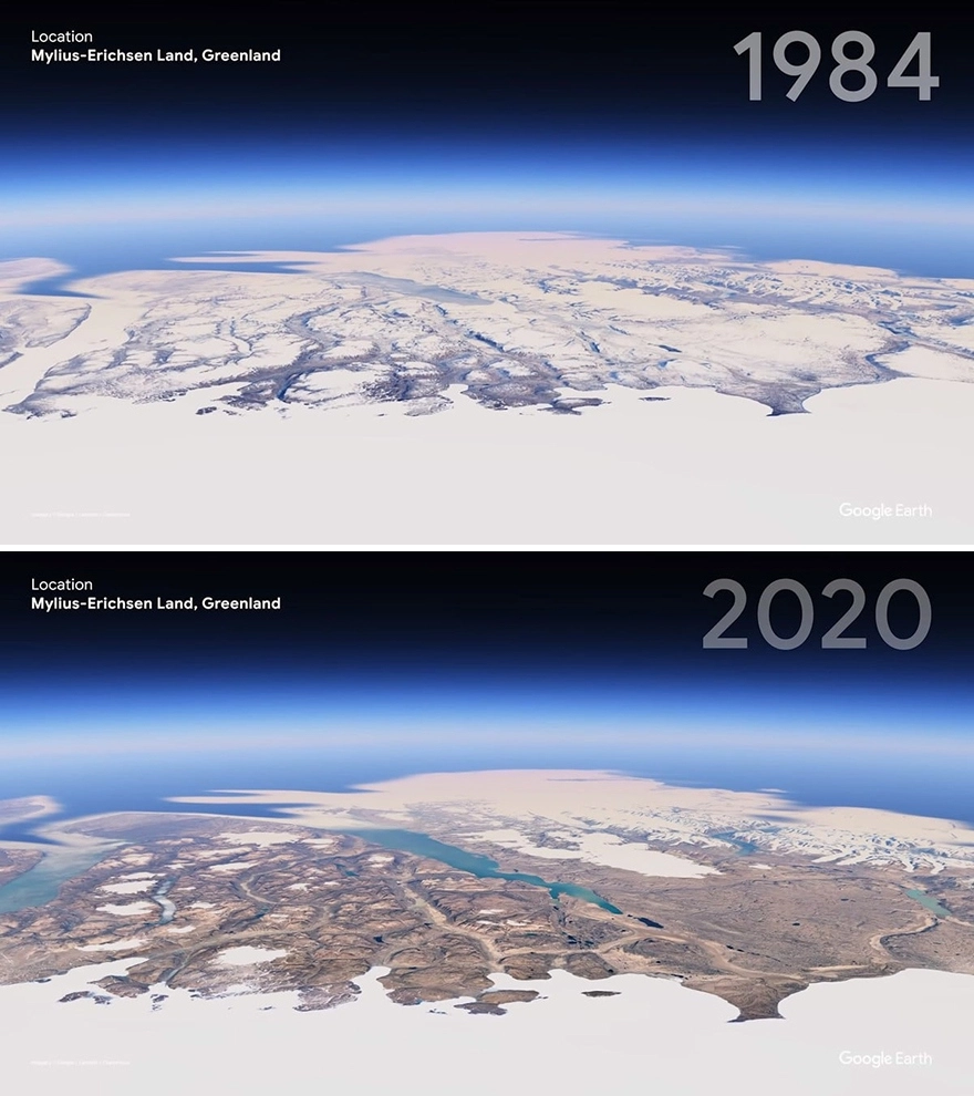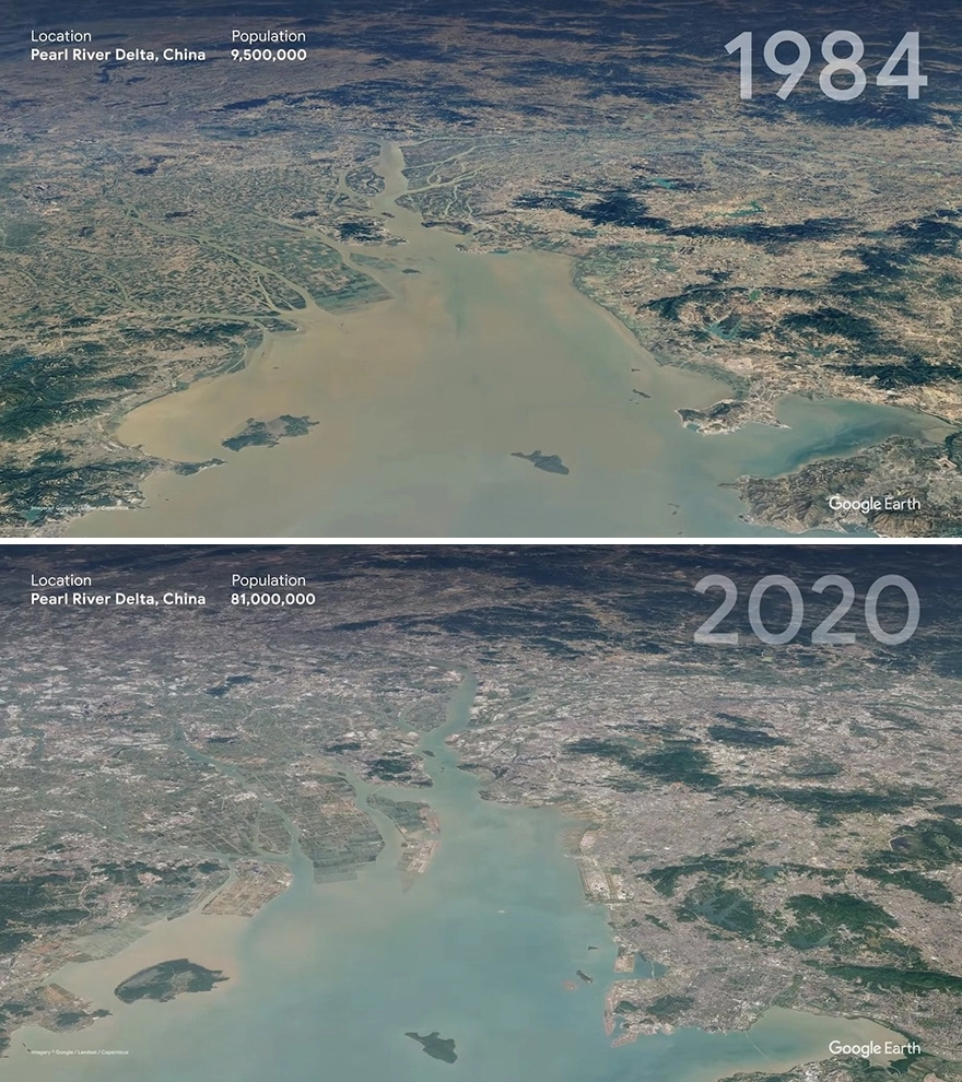Спутниковые кадры, собранные с 1984 по 2020 год, помогли увидеть, как изменились леса, города и ледники, и разница действительно впечатляет.
