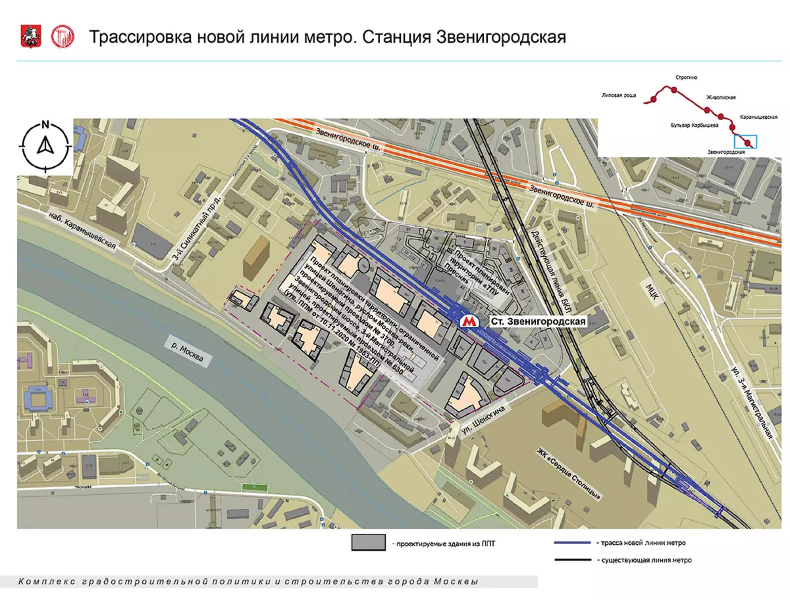 Новая линия соединит «Москву-Сити» с новым деловым центром в Рублево-Архангельском. В первую очередь она обеспечит допольнительное транспортное обслуживание делового района Сити и улучшит доступность районов Митино, Строгино и Хорошёво-Мнёвники. Не дублируя существующую Арбатско-Покровскую линию она позволит её разгрузить, так как предоставит москвичам разные варианты для своих маршрутов. Длина новой линии около 19 километров, но она делится на два пусковых участка. Первый, длиной более 12,6 километров, включает в себя шесть новых станций. Он пройдет от станции «Шелепиха» Большой кольцевой линии метро до станции с проектным названием «Липовая роща». Помимо этих станций, в него включены станции: «Звенигородская», «Карамышевская», «Бульвар Карбышева», «Живописная», «Строгино», «Липовая Роща». Названия пока рабочие и могут, естественно, поменяться. Так же в состав новой линии войдет участок БКЛ от станции «Шелепиха» до станции «Деловой центр». На втором этапе строительства предполагается продление линии за МКАД: сегодня ведется проектирование второго участка, на котором расположатся еще две станции — «Ильинская» и «Рублёво-Архангельское».