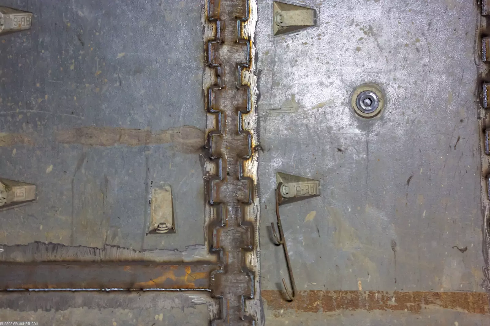 9. Две трубы слева — это подвод воды для охлаждения оборудования щита и отвод «горячей» воды. На поверхности стоит небольшая градирня, которая её охлаждает. Далее идут полосы для сварки стыков. Еще одна труба внизу — дренаж воды из тоннеля. Как это ни странно, но больше всего воды получается из-за его мойки от породы.
