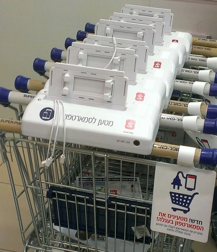 1. В супермаркетах Израиля есть тележки, с помощью которых можно зарядить телефон.