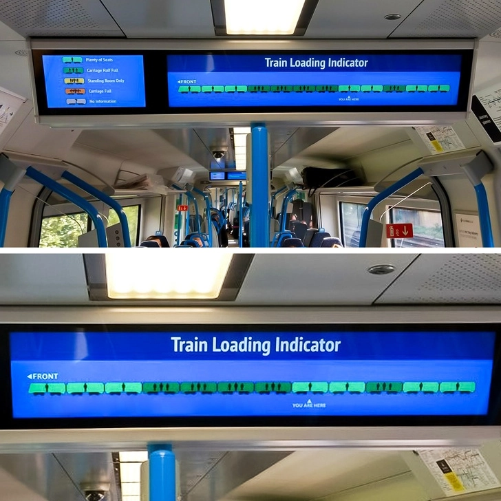 3. В этом поезде есть информационный экран, показывающий, насколько заполнен каждый вагон.