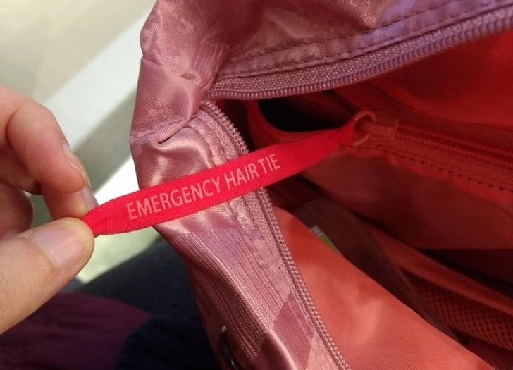 10. «В моей сумке на молнии есть деталь, которую можно использовать в качестве „аварийной“ резинки для волос».