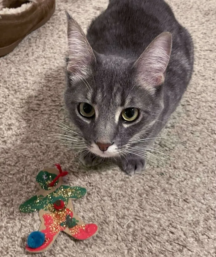 «Весь день лежал в кровати из-за болезни. Наконец-то открыл дверь, и кот Артур принес мне в подарок рождественское украшение с ёлки».© Соцсети