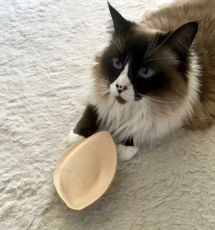 «У моей кошки есть коллекция вкладышей, которые она сняла с моих бюстгальтеров, и она издает странное мяуканье, пинося мне одну из них каждую ночь».© Соцсети