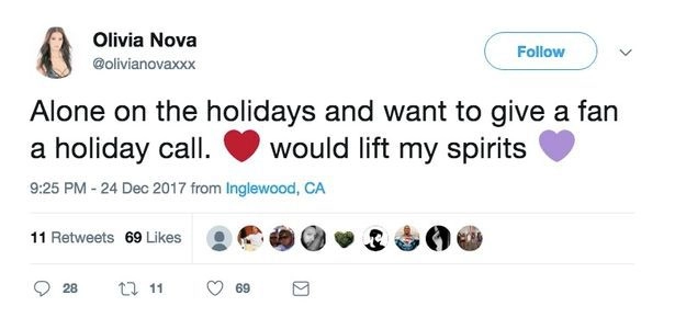 На Рождество актриса в своем микроблоге в Twitter обратилась к поклонникам с вопросом, может ли она позвонить кому-нибудь, чтобы помочь ей «поднять настроение».