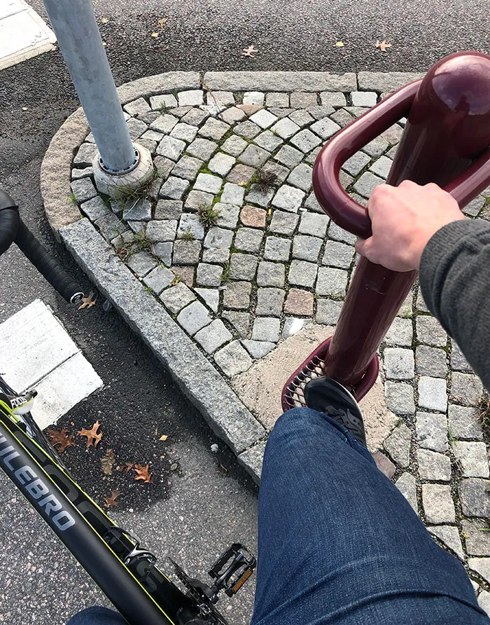 «Столбик, за который велосипедисты и байкеры могут держаться в ожидании светофора в Швеции».© Соцсети