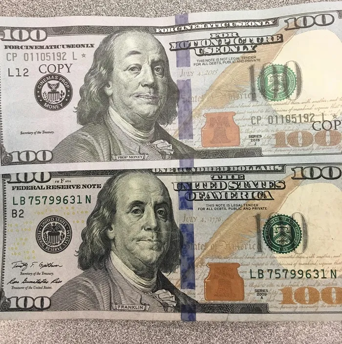 «Мой коллега принял эти фальшивые 100 долларов на работе… Ниже настоящие для сравнения». © Соцсети