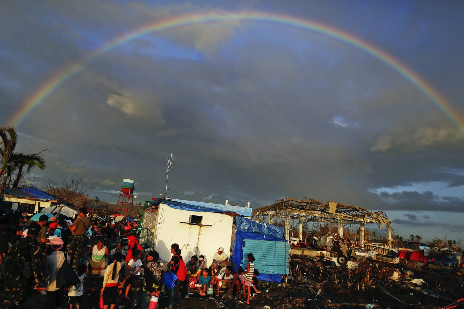Палестинцы смотрят на боевиков Хамас, пока они спускаются на веревке вниз по зданию во время военного парада, отмечающего первую годовщину восьмидневного конфликта с Израилем в Секторе Газа 14 ноября 2013.