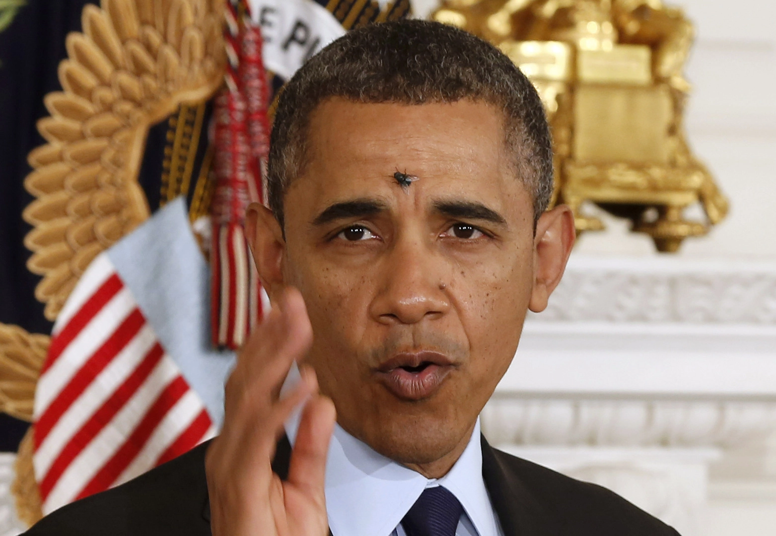 Муха села на лоб Барака Обамы во время речи в Белом доме 24 января 2013 года.