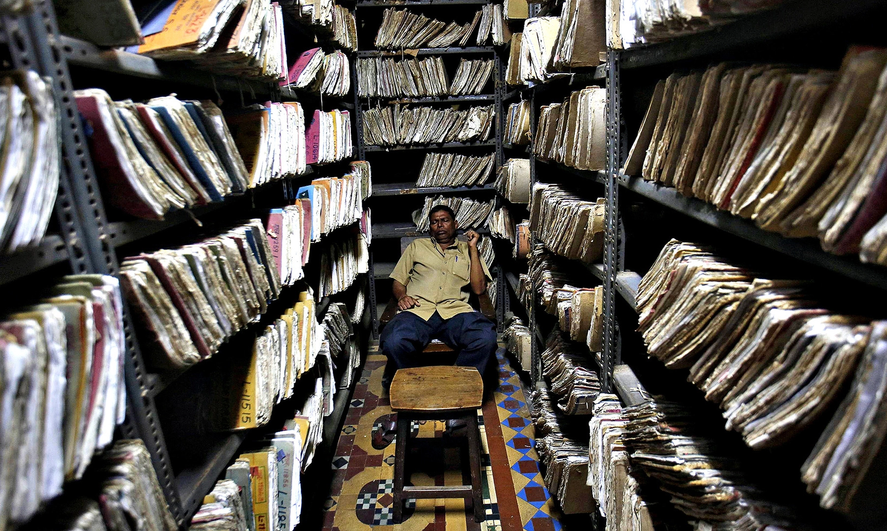 Спящий работник Центрального телеграфа в Мумбаи, прекратившего свою деятельность 15 июля 2013 года.