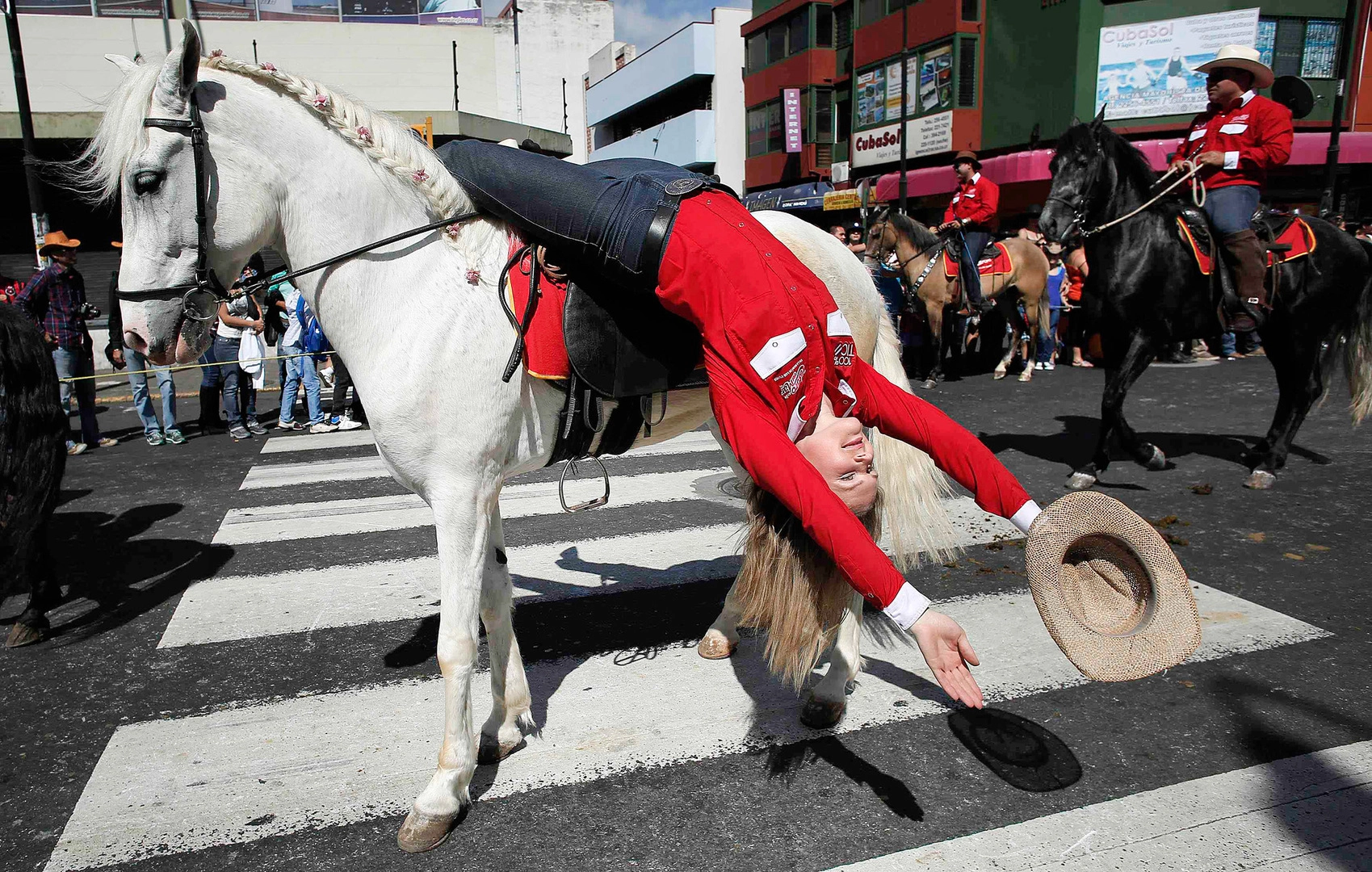 Участница традиционного конного парада на улице Сан-Хосе в Коста-Рике.