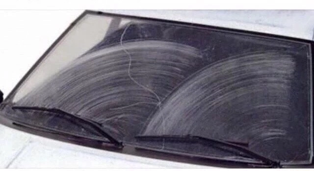 Этот парень на моих глазах почистил стекло от снега наждачной бумагой