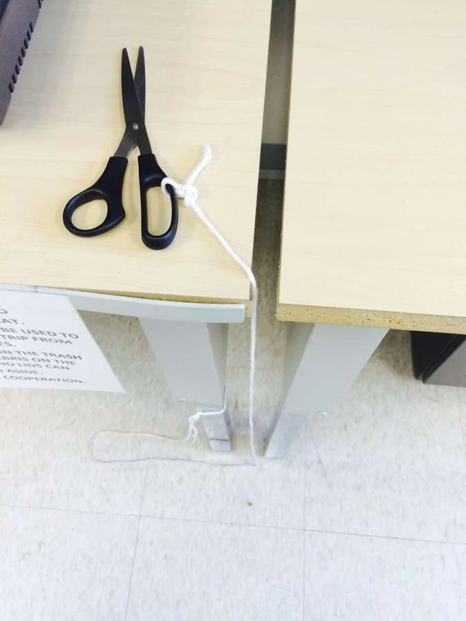 Спасать ножницы от кражи, привязав их верёвочкой, — гениальная идея