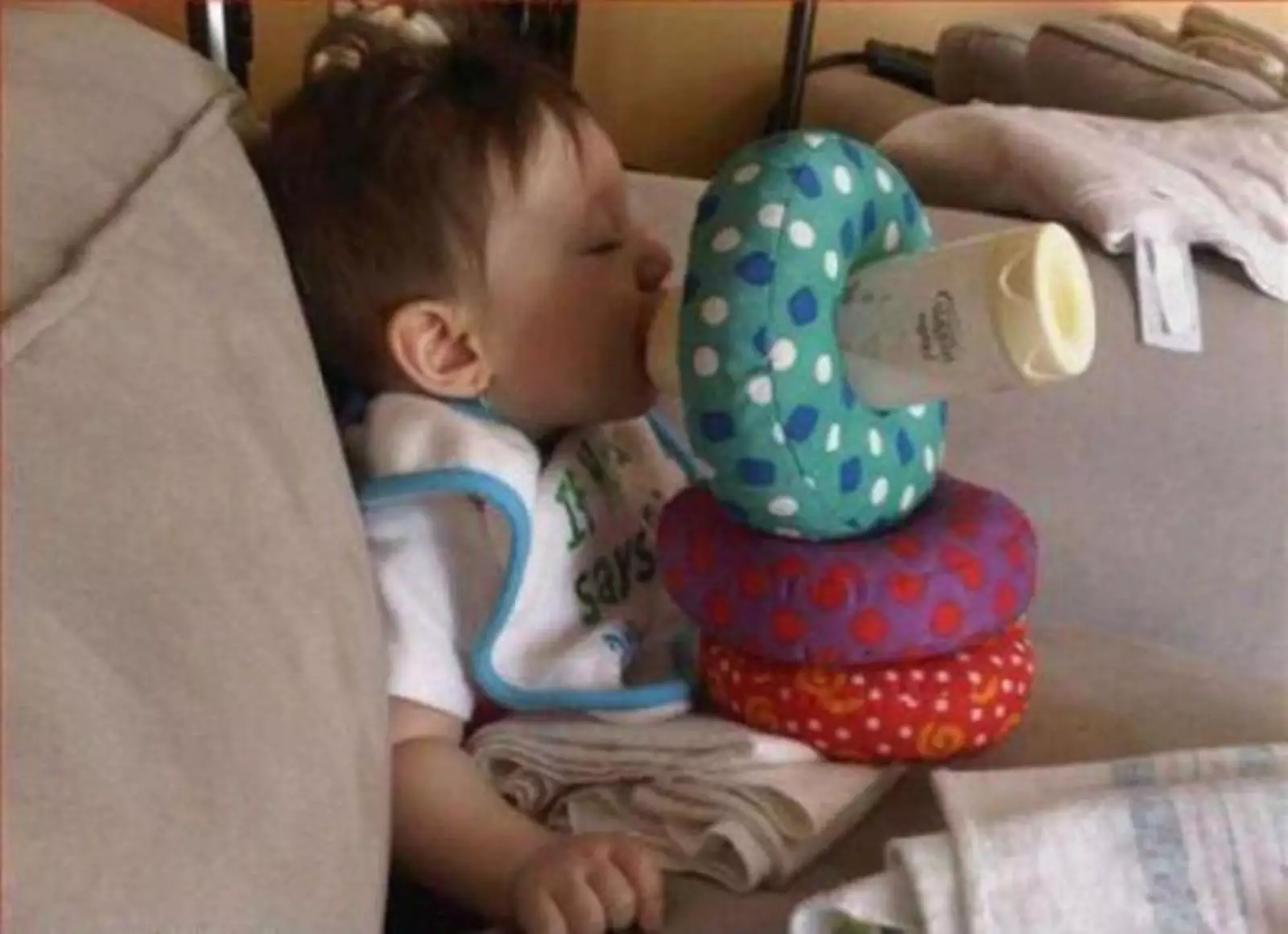 Когда лень держать бутылочку ребенку.