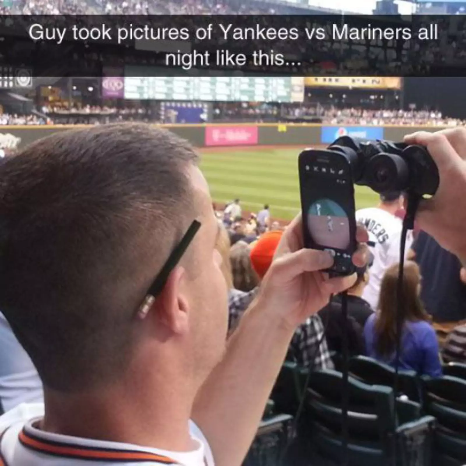 Парень изобрел зум для своего телефона, чтобы запечатлеть бейсболистов на поле.